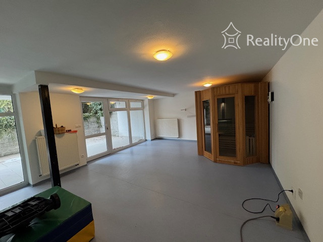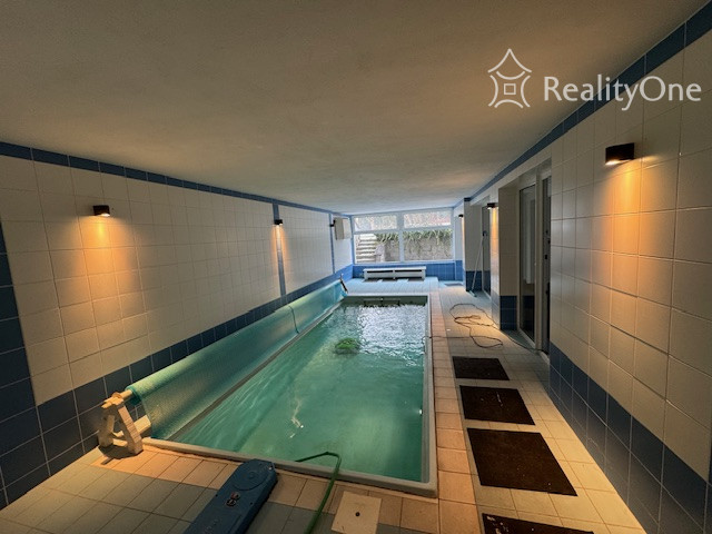 - Podzemné podlažie: garáž s 3-4 miestami, bazén s protiprúdom, sauna, terasa, práčovňa, kotolňa, východ na záhradu